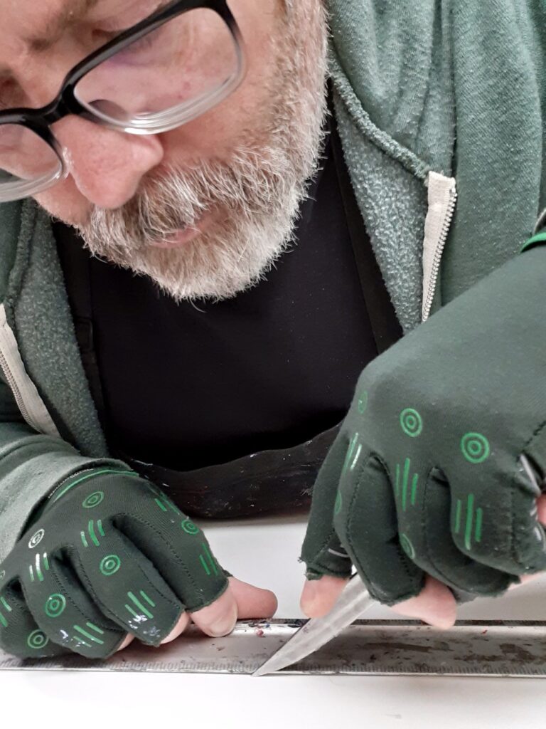 But I still had ambition. Kennewick was not going to fulfill my needs. During a trip over to Seattle to catch “White Zombie,” I put my resume and an application in at Daniel Smith. As a printmaker, this was the only place to get your paper. Before the tinnitus stopped, I received a call from them wanting an interview. I moved to Seattle in 1995 and worked for Daniel Smith until 2000. The artists I met, the different people from different worlds. Lifelong friendships.