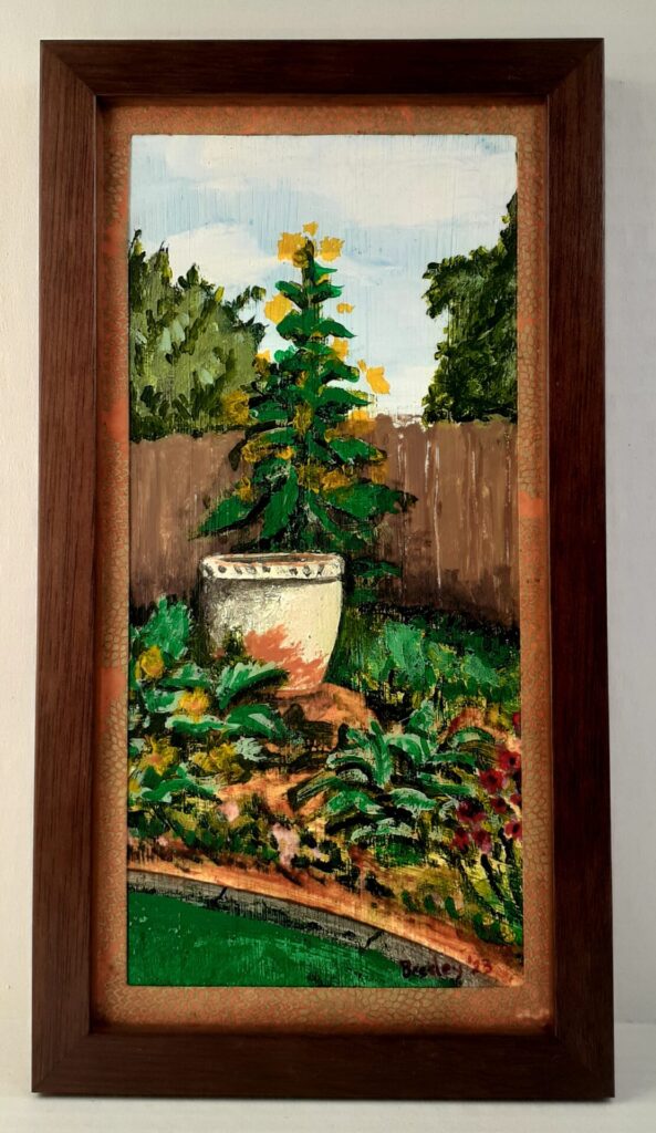 Corner sunflower, 2023, 6″×11″, acrylic on Bristol board.