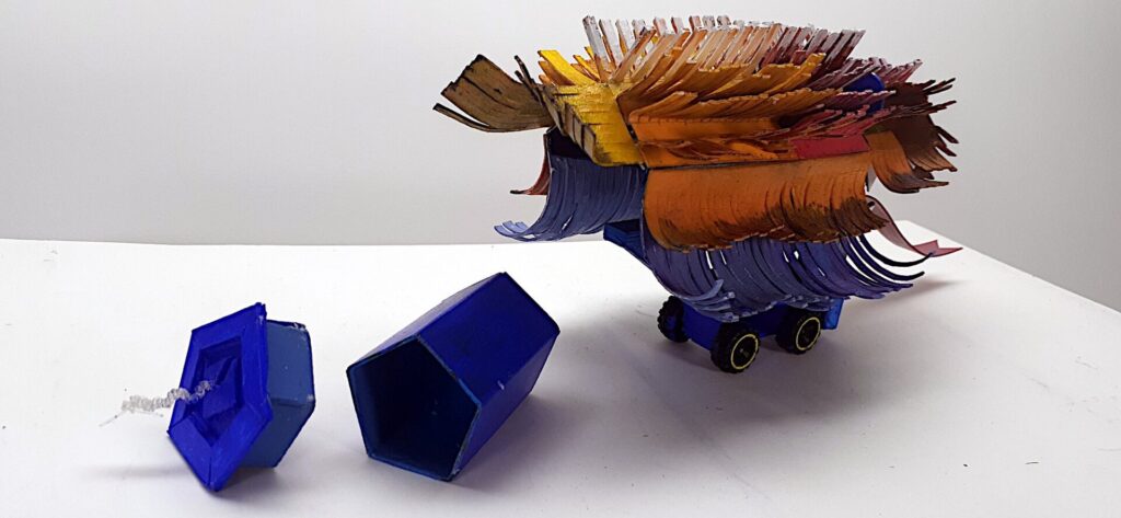 Wheels, $50, 9″x4″x4.5″H, 2022