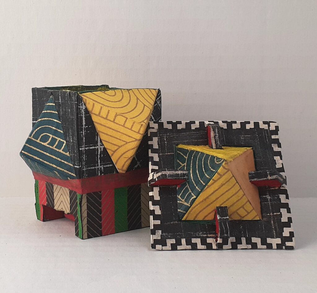 Pyramid box Pyramid box, 2024, 3 5/8"×3 5/8"×4", decorative paper, Bristol board, acrylic.Pyramid box, 2024, 3 5/8″×3 5/8″×4″, decorative paper, Bristol board, acrylic.Pyramid box, 2024, 3 5/8″×3 5/8″×4″, decorative paper, Bristol board, acrylic.Pyramid box, 2024, 3 5/8″×3 5/8″×4″, decorative paper, Bristol board, acrylic.